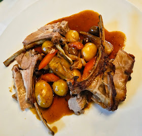 ..some in the party chose rack of lamb, which was brought to the table in a sizzling pan, and carefully divided......before being placed before a very hungry Matthew!